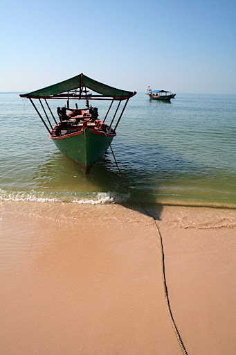 Quand on arrive, on récupère nos sac trempés de jus de climatisation macéré. On prend des mobs qui nous déposent, après pas mal d’essais, dans une guesthouse pas trop chère. Première balade sur la « plage », où plutôt les 50 cm de sable que les bars, les restos et les transats n’occupent pas. Le bord de mer est sympa mais l’ambiance est à chier : tous les bars sont tenus par des blancs, les jolies jeunes cambodgiennes sont assises sur les genoux de vieux messieurs dégueux, les prix sont le double de ceux de Phnom Penh… Clément à du mal à supporter cet aspect du tourisme…